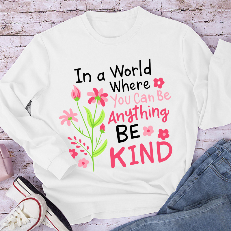 Be Kind Pink Flower Teacher Long Sleeve T-Shirt