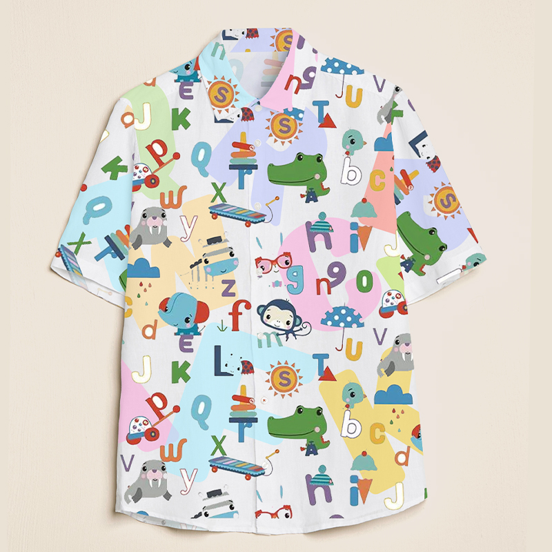 Cartoon Alphabet Teacher Short Sleeve Shirt