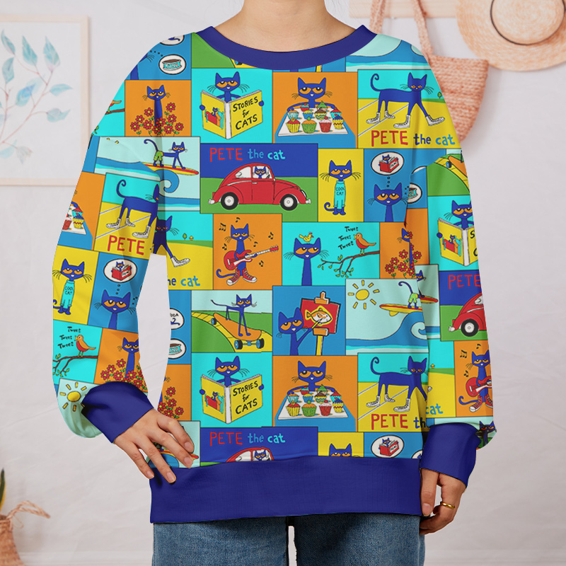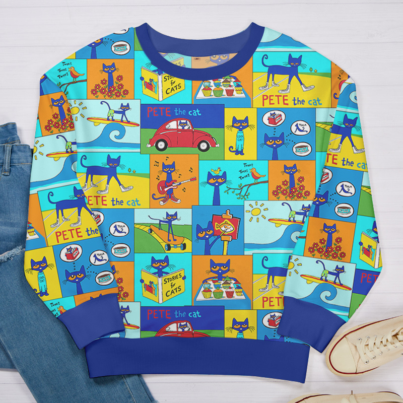 Cat Daily Routine Teacher Printed Sweatshirt
