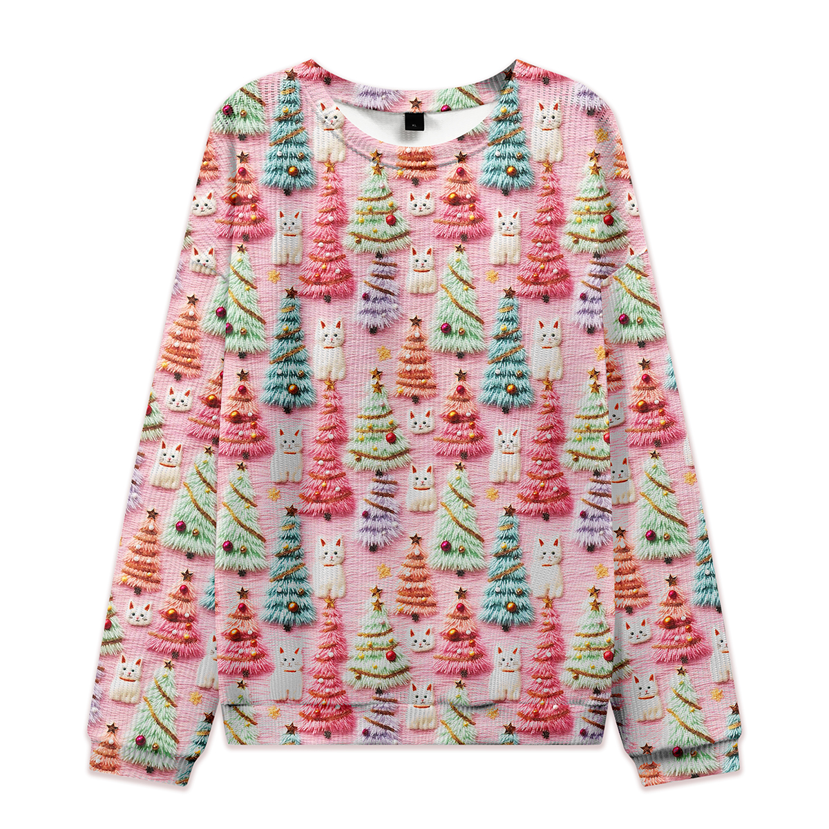 Christmas Cute Cat Teacher Ugly Knit Sweatshirt