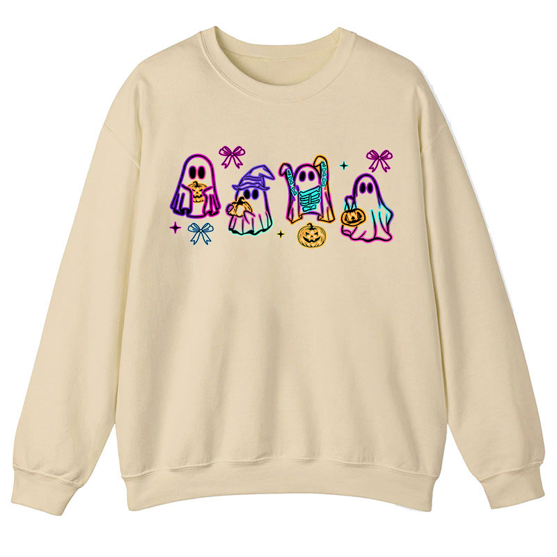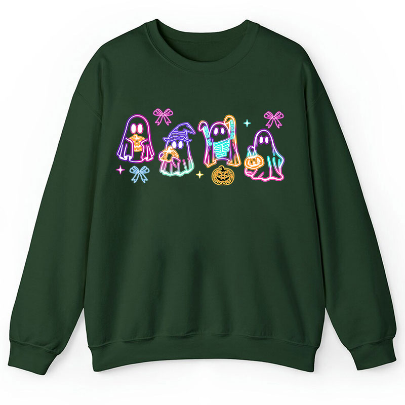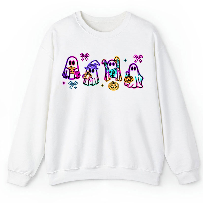 Colorful Neon Ghost Pumpkin Teacher Sweatshirt