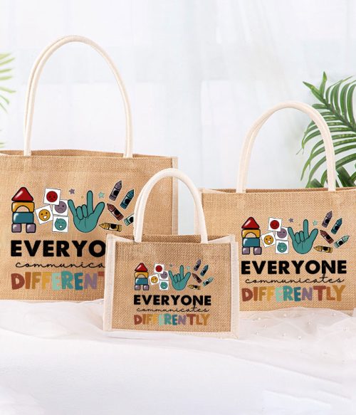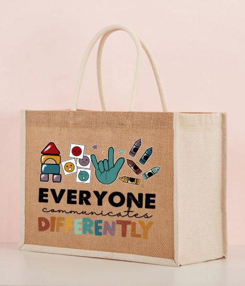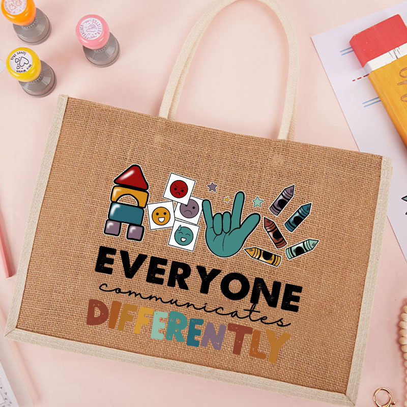 Everyone Communicates Differently Teacher Jute Bag