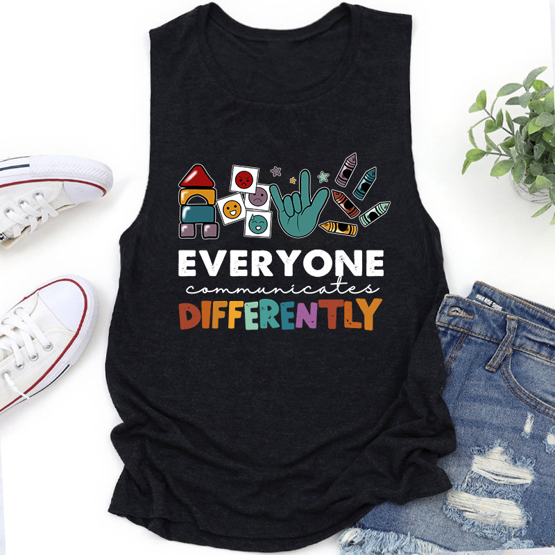 Everyone Communicates Differently Teacher Tank Top