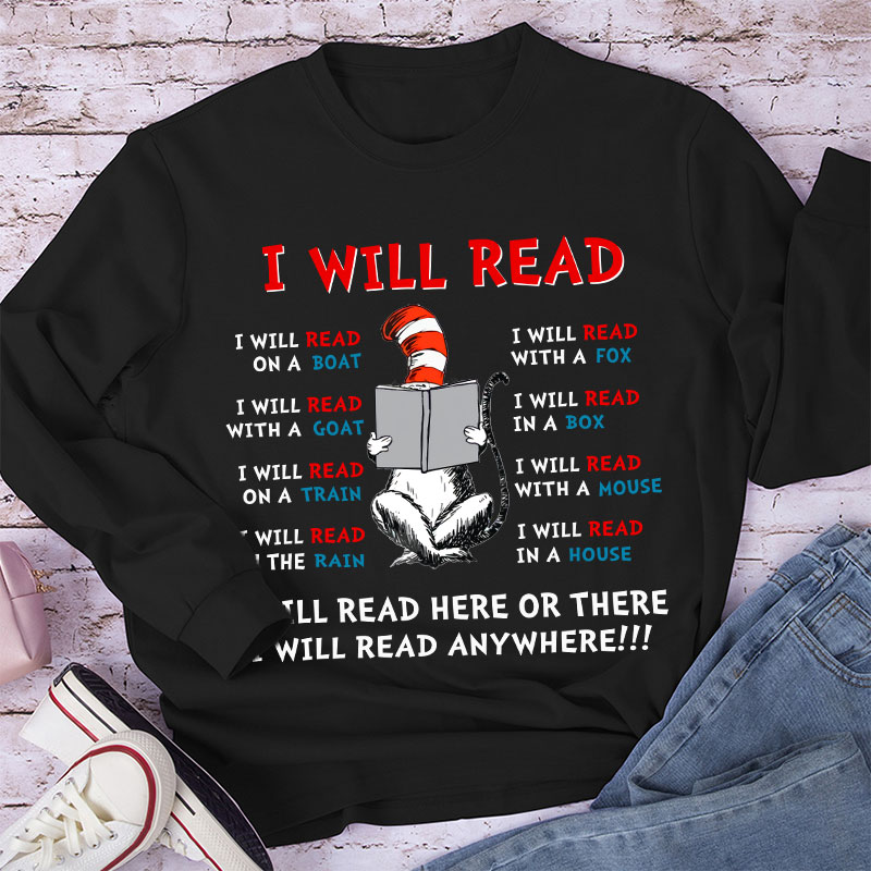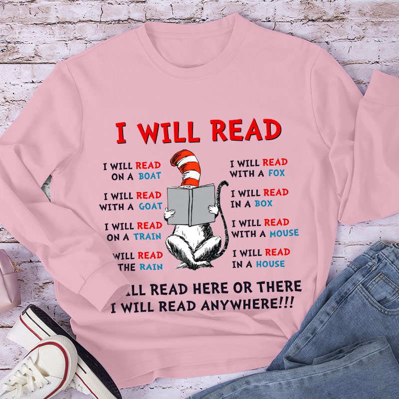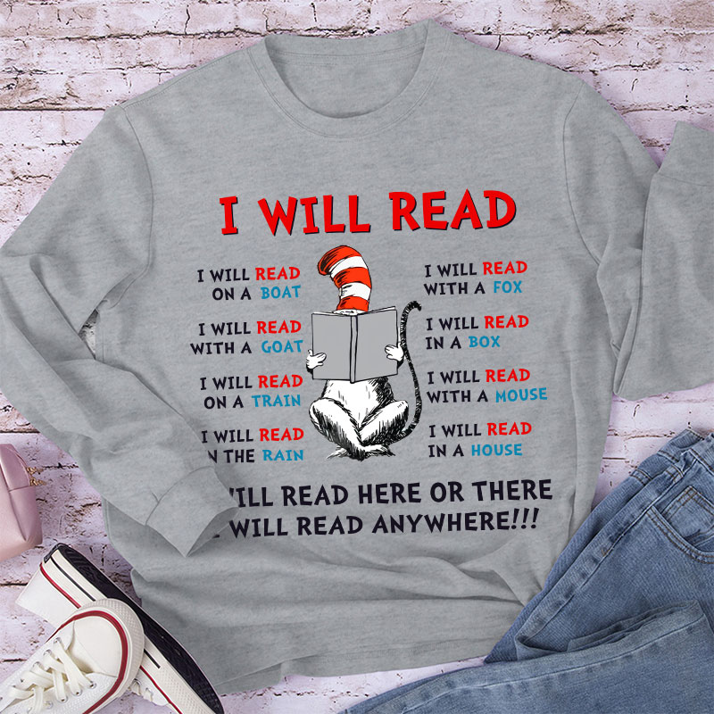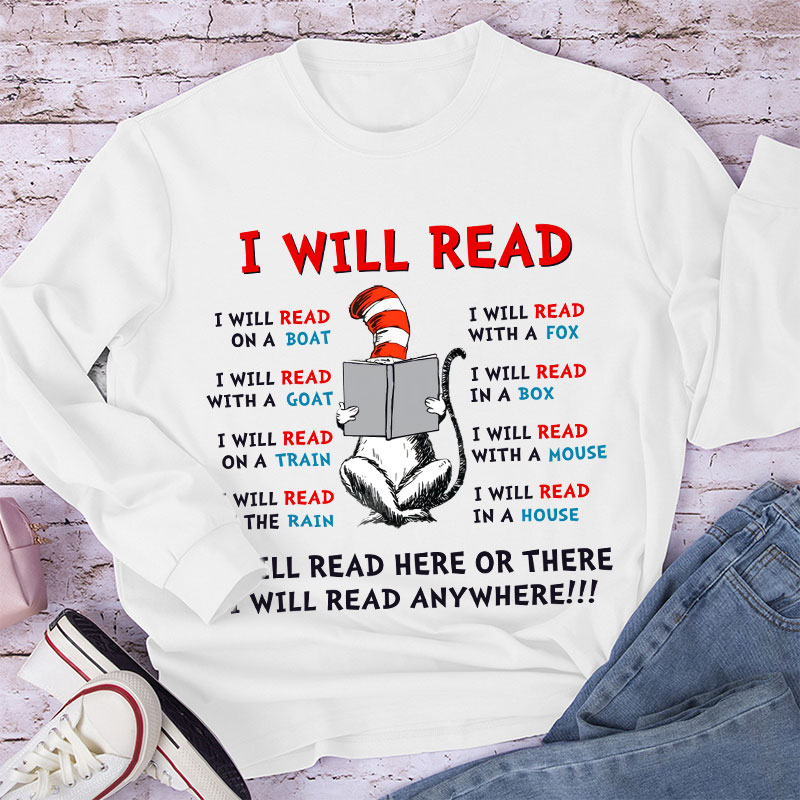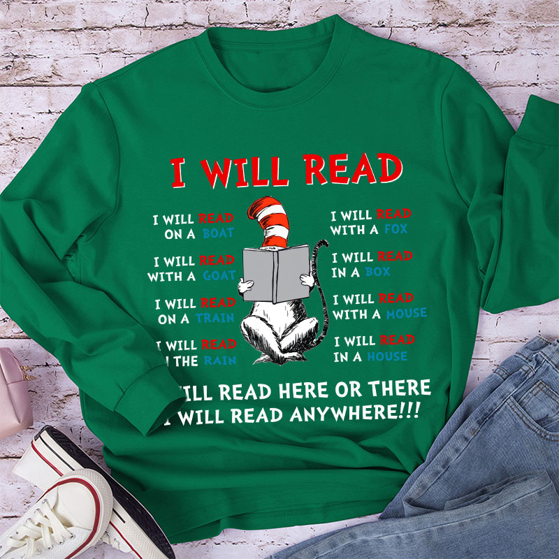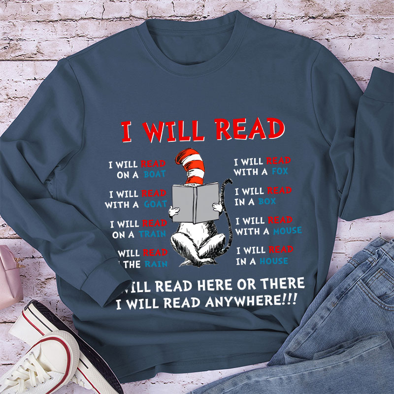 I Will Read Anywhere Teacher Long Sleeve T-Shirt