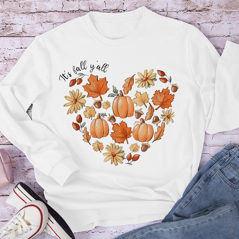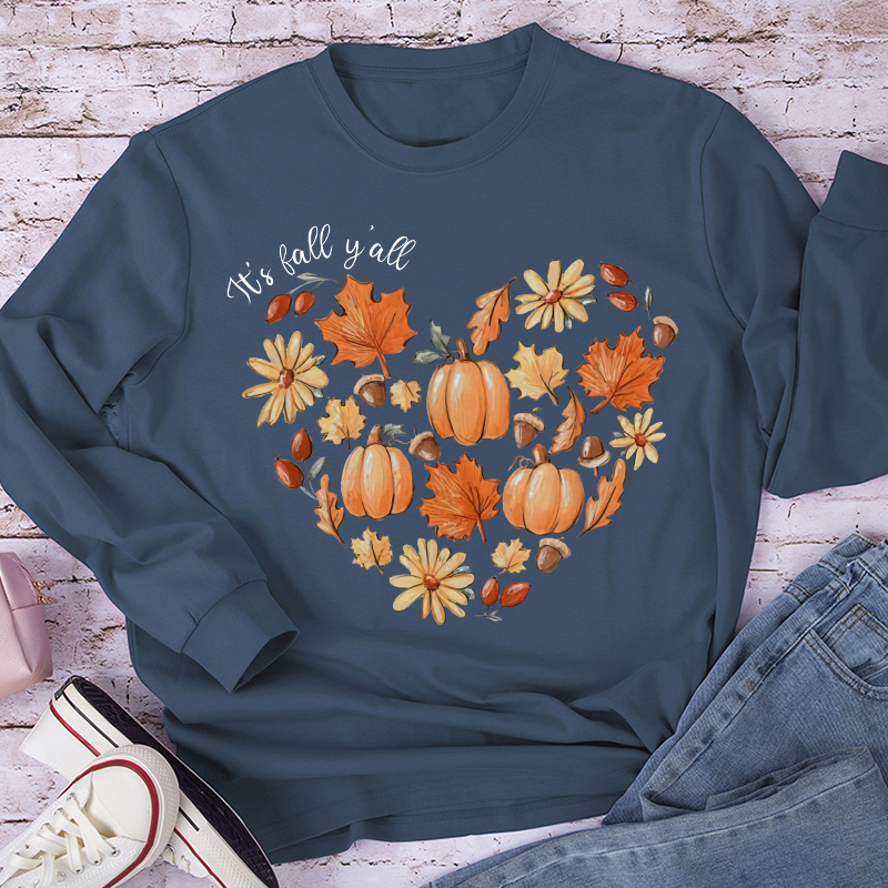 It’s Fall Y’all The Heartbeat Of Fall Teacher Long Sleeve T-Shirt