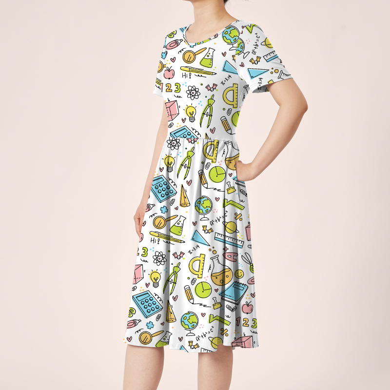 My Good Helper In Mathematics Teacher Printed One Piece Dress