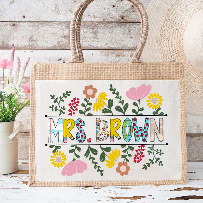 Personalized A Cluster Of Blooming Flowers Teacher Jute Lunch Bag