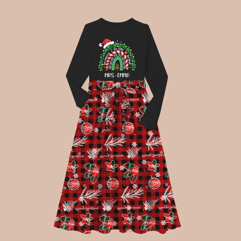 - Waist tie with elastic for stretch. long sleeves and round-shaped neckline.