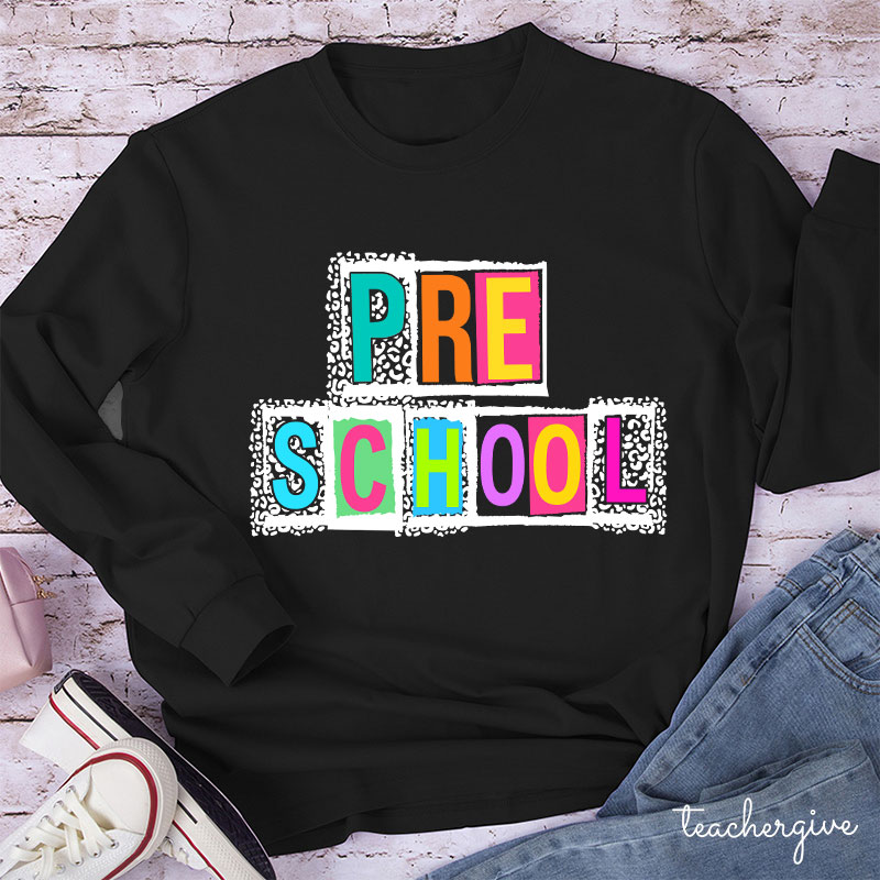 Personalized Black Panther Print Color Letters Teacher Long Sleeve T-Shirt