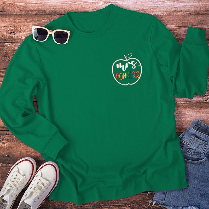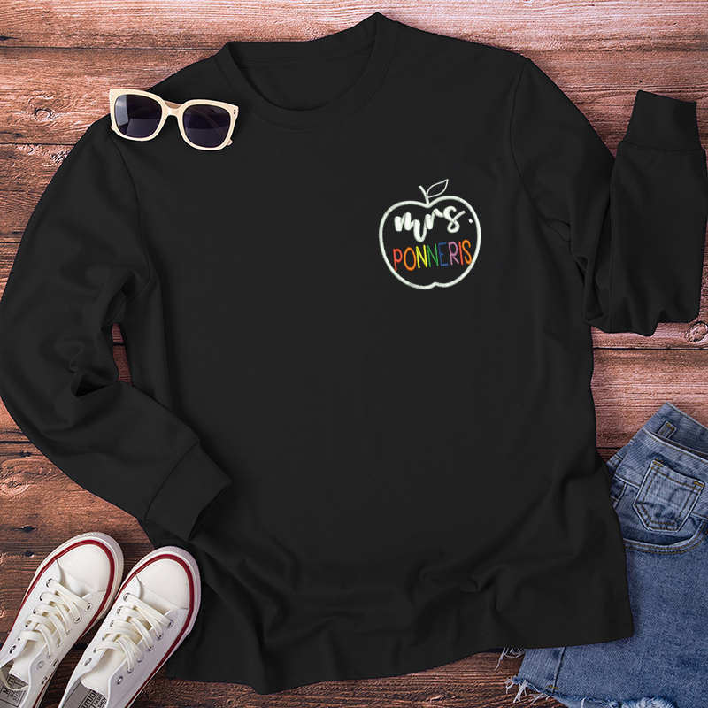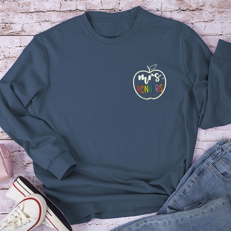 Personalized Colorful Teacher Name Teacher Embroidery Long Sleeve T-Shirt