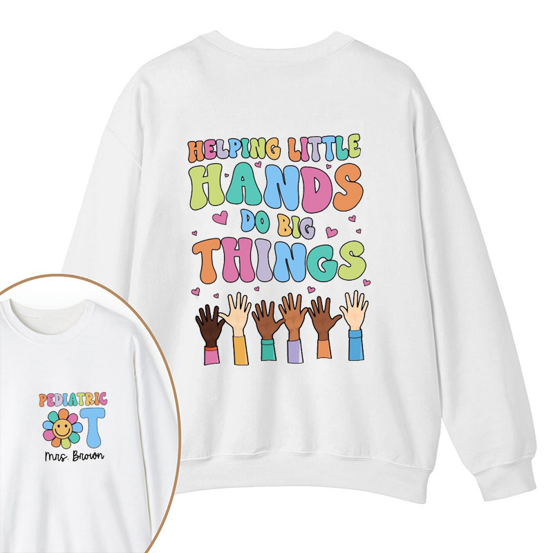 Personalized Name Helping Little Hands Do Big Things Teacher Two Sided Sweatshirt