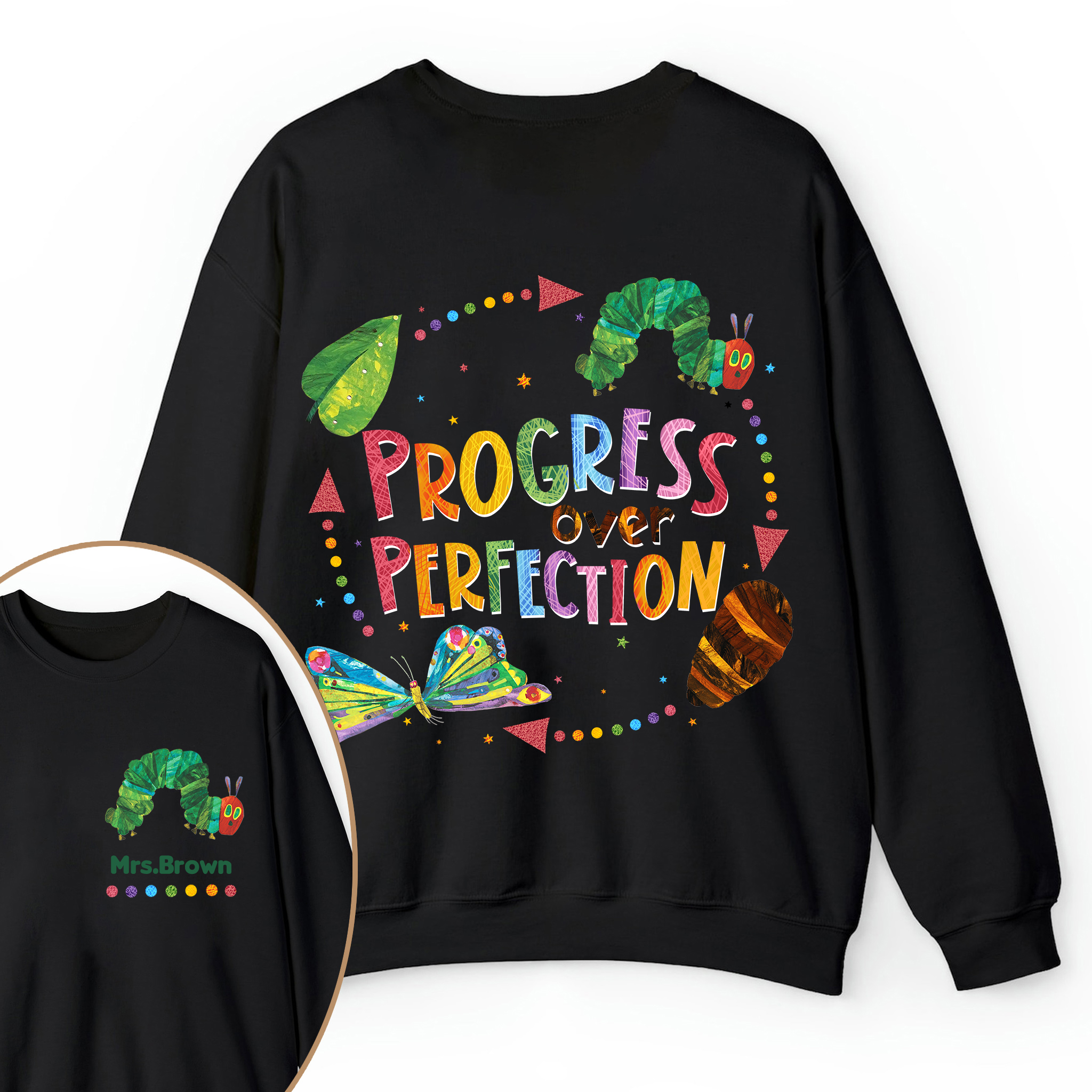 Personalized Name Progress Over Perfection Teacher Two Sided Sweatshirt