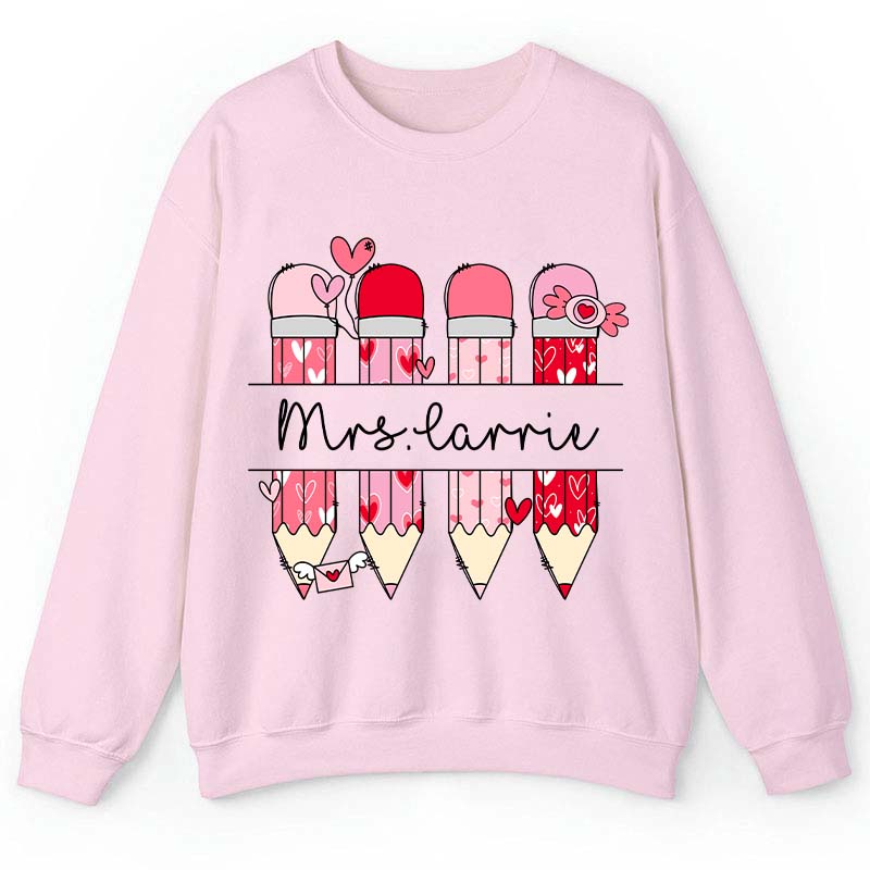 Personalized Pink Pencil Name Teacher Sweatshirt