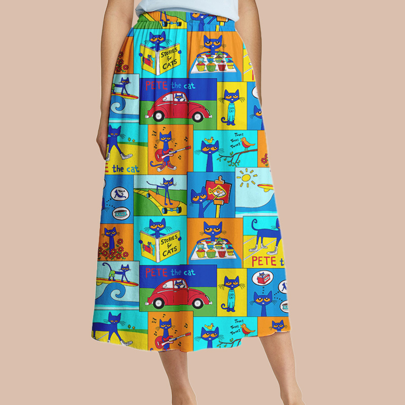 Cat’s Daily Routine Teacher Printed Midi Skirt