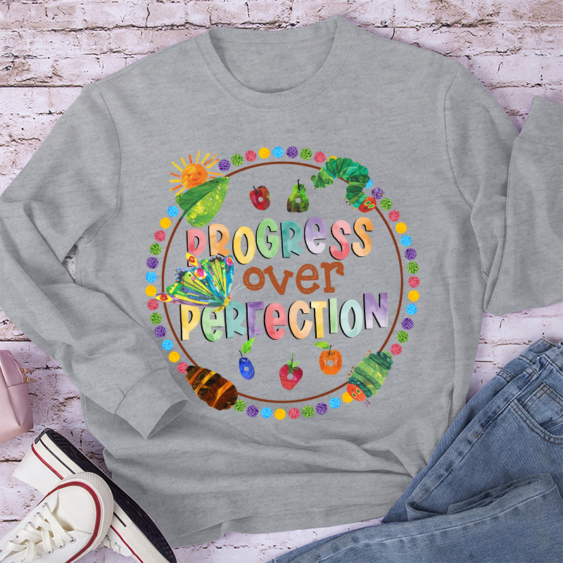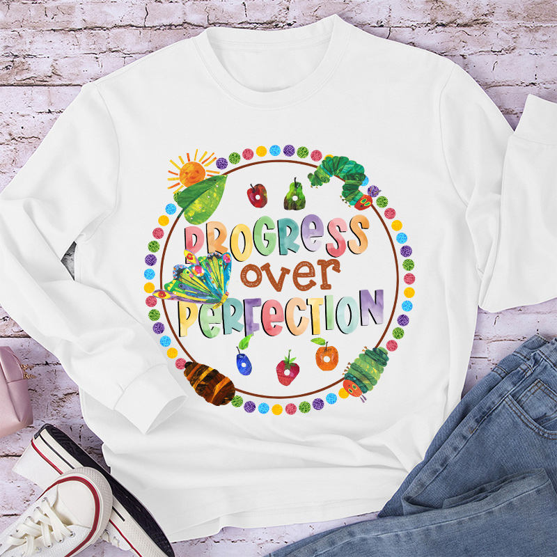 Progress Over Perfection Caterpillar Teacher Long Sleeve T-Shirt