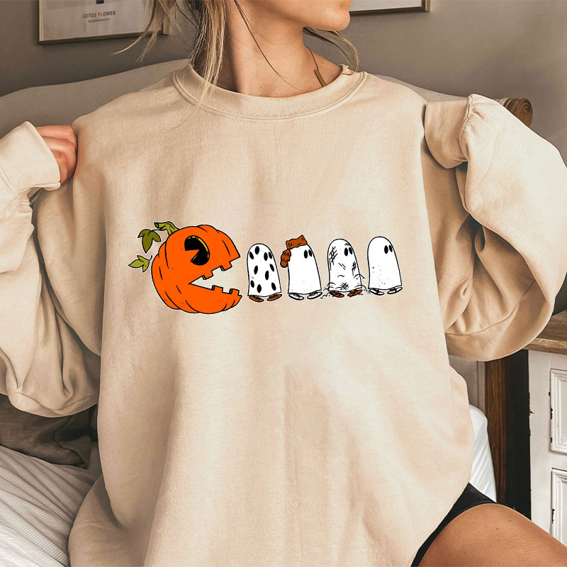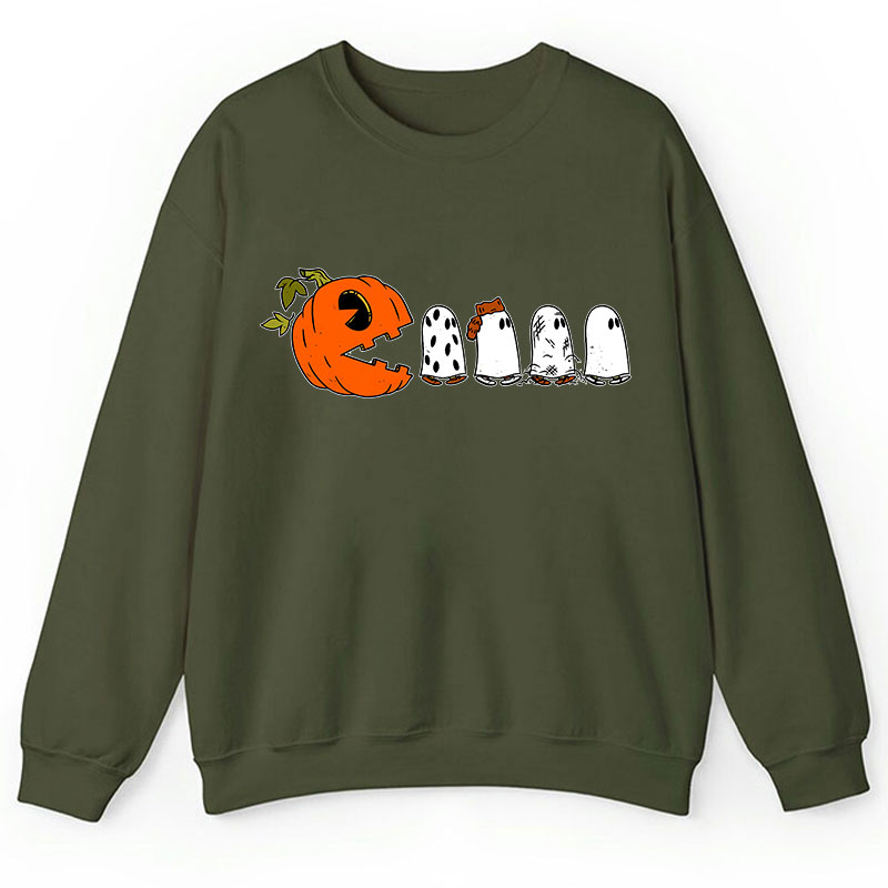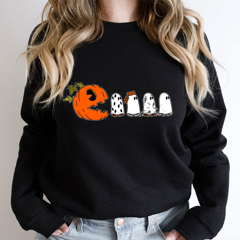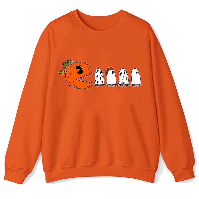 Pumpkin Ghost Pacman Teacher Sweatshirt