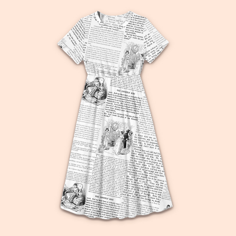 Retro Design Little Women Chapter Teacher Printed One Piece Dress